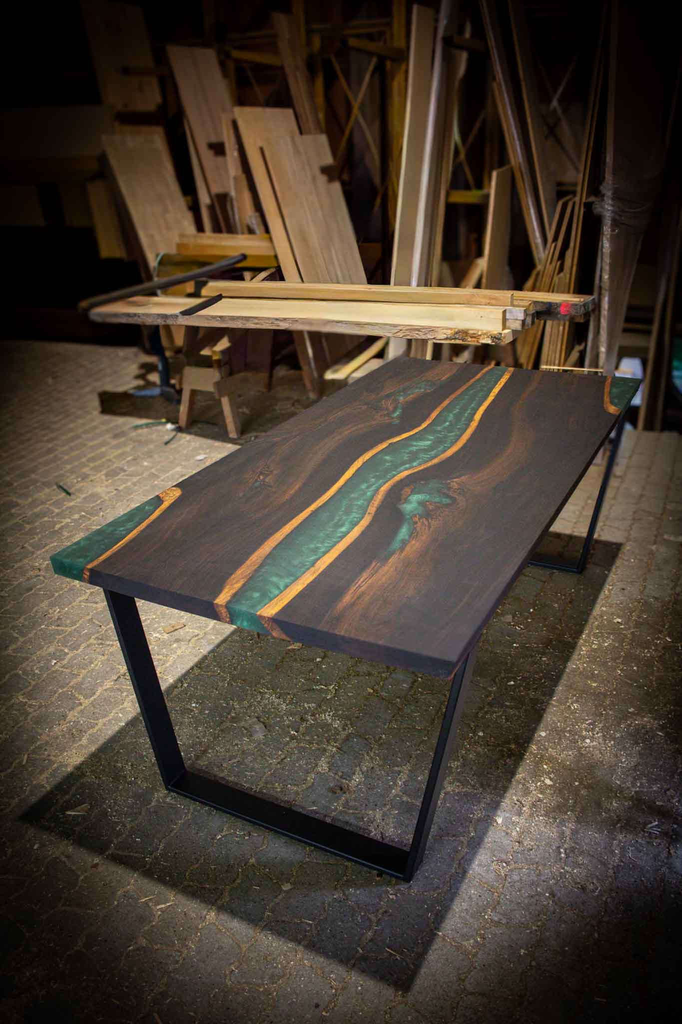 Jeder GussHolz Rivertable wird nach den persönlichen Vorstellungen